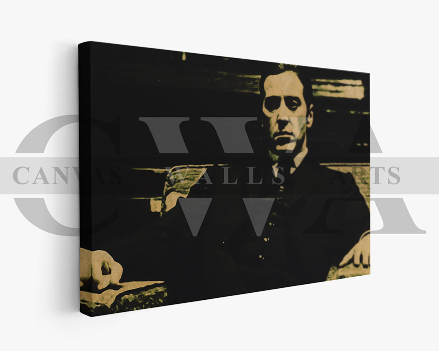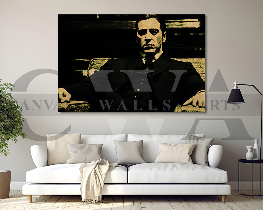 Rendered in moody tones, bold brushstrokes, and minimalist symbolism, this canvas art captures the cold calculation and old-world power that permeate every frame of the film. It's the perfect fusion of modern style and classic storytelling — ideal for fans of mafia films, cinematic history, and high-end visual drama.