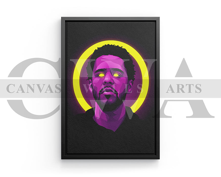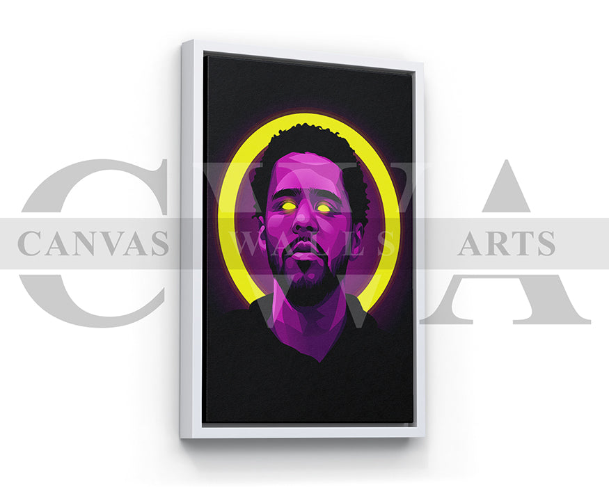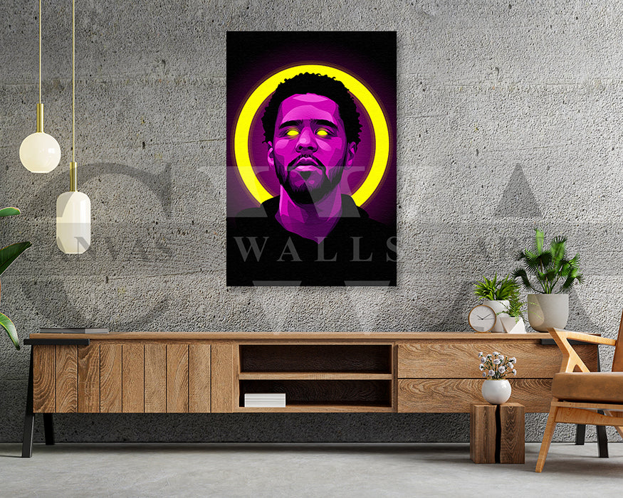 Premium J. Cole Canvas Wall Art with neon-inspired design
