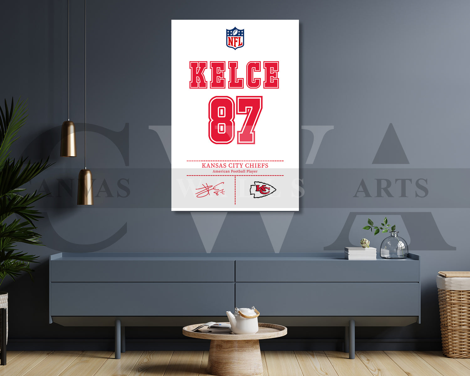 Travis Kelce Jersey Canvas Wall Art NFL Jersey Poster Print Sports Canvas Frame Ready To Hang